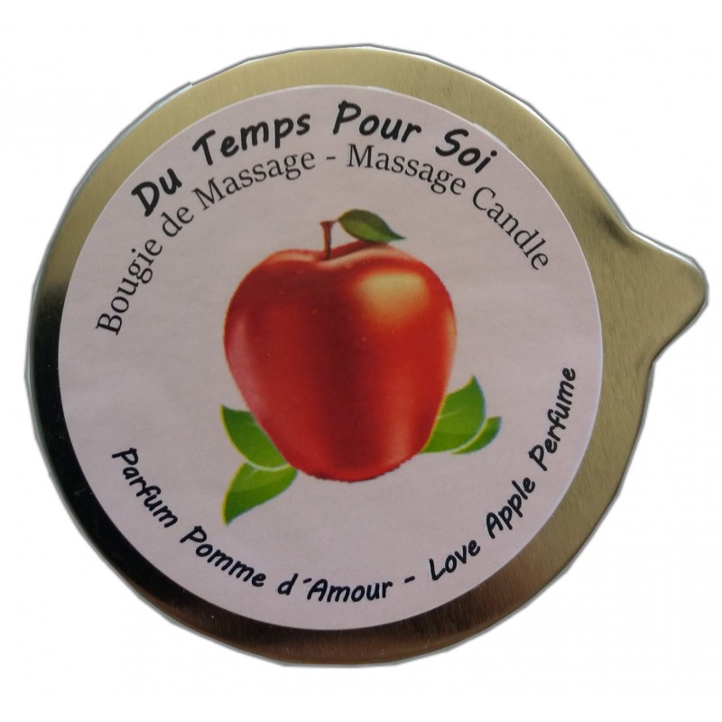 Bougie de massage au Parfum Pomme d'Amour dans son boitier étanche et refermable