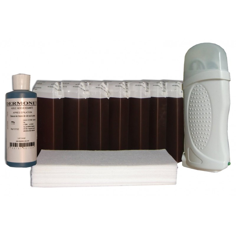 Kit d'épilation à la cire à épiler CHOCOLAT. Utilisation sur toutes peaux et toutes zones.