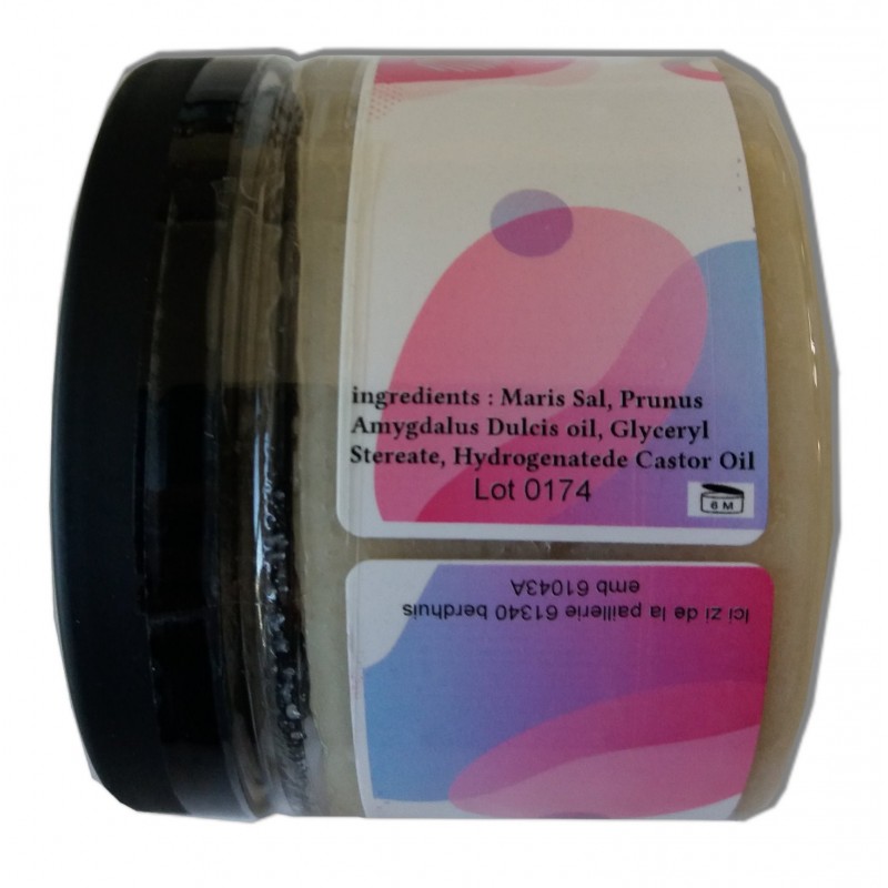 Ingredients : Maris sal, Prunus amygdalus dulcis oil, glyceryl stereate, hydrogenatede castor oil,