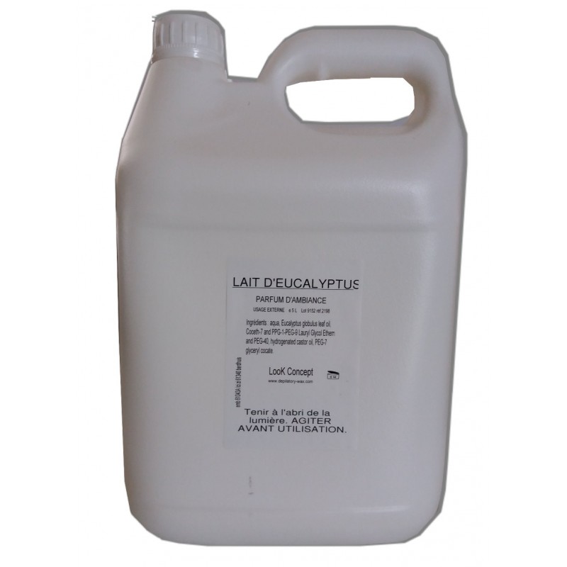 Bidon de 5 litres de lait parfumé à l'eucalyptus pour diffuseur aromatique et automatique en hammam.