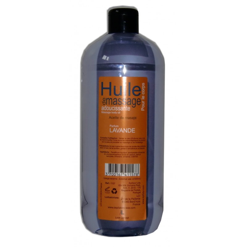 Flacon d'un litre d'huile de massage professionnelle au parfum Lavande