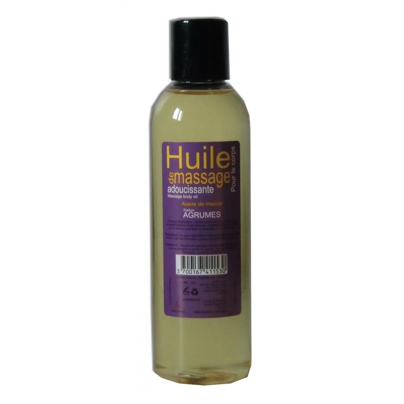 Flacon de 200 ml d'huile de massage adoucissante au parfum agrumes