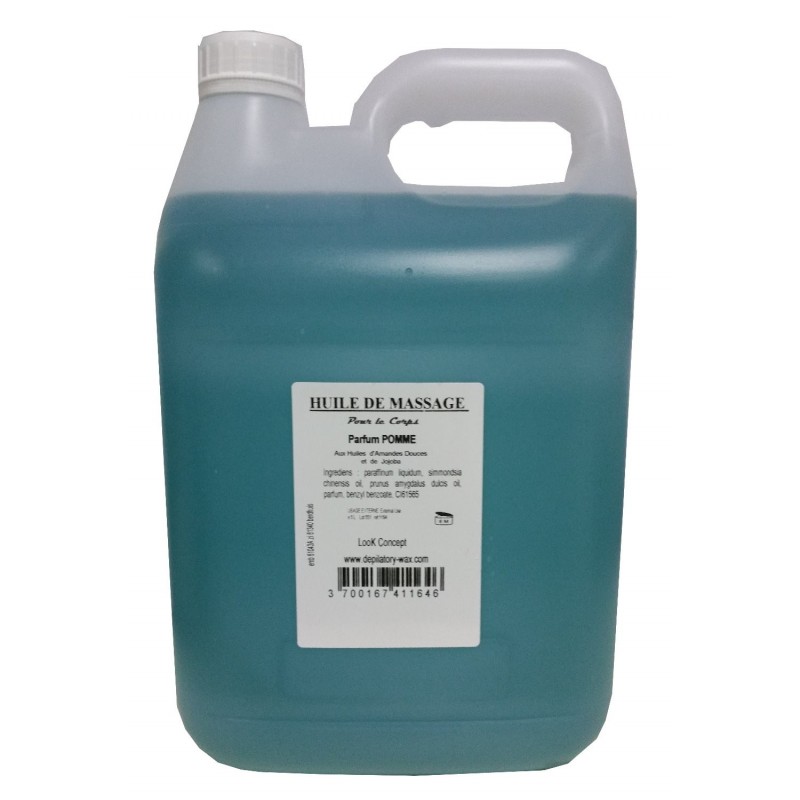 Flacon professionnel de 5 litres d'huile de massage adoucissante au parfum Pomme.