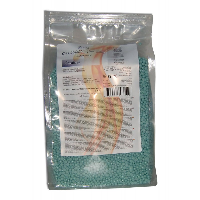 2 kg Cire à épiler en perles pelable CARAÏBES. Application à chaud. Une cire fine pelable qui est basse température et souple à froid. Idéale pour une épilation intégrale. Pas besoin de bandes pour ces cires.