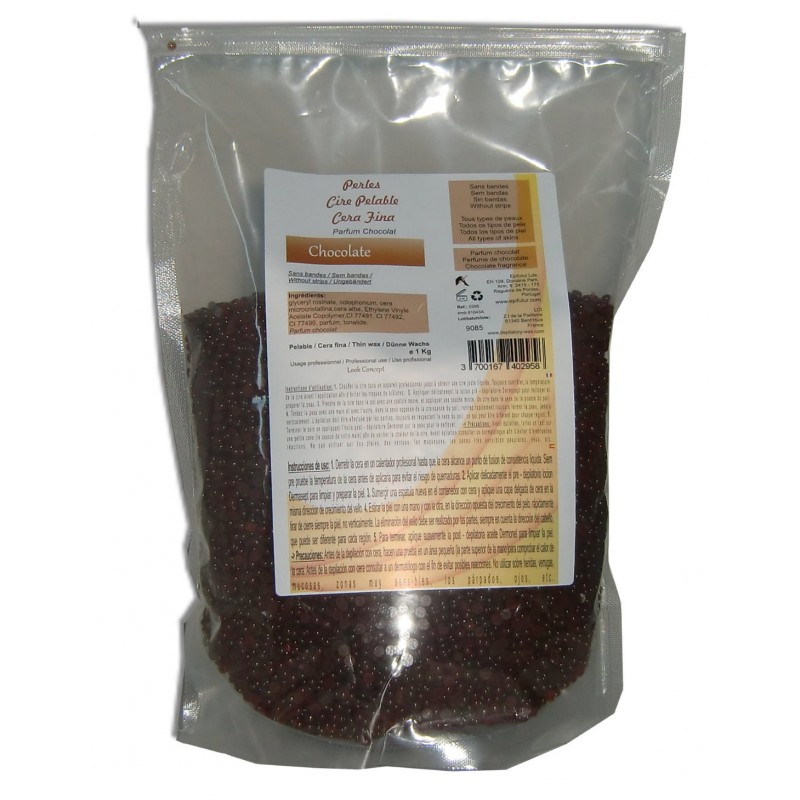 Cire à épiler professionnelle Chocolat en perles du type Elastique ou Pelable. Application à chaud. Sachet d'un kg.