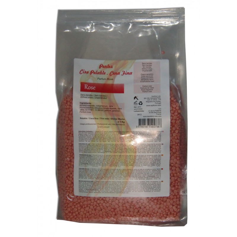 Cire à épiler pelable Rose, une cire à épiler professionnelle en perles qui reste souple à froid. Sachet de 1 kg