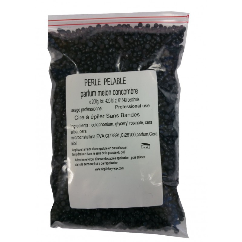 Sachet de 200g de Cire à épiler pelable, cire professionnelle Melon-concombre en perles. Application à chaud. Une cire à épiler pelable basse température à utiliser sans bandes.