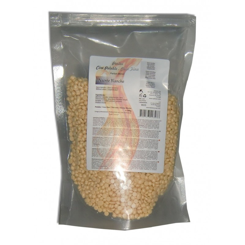CIRE FINE PELABLE basse température en perles. NACREE BLANCHE. Sachet de 200g