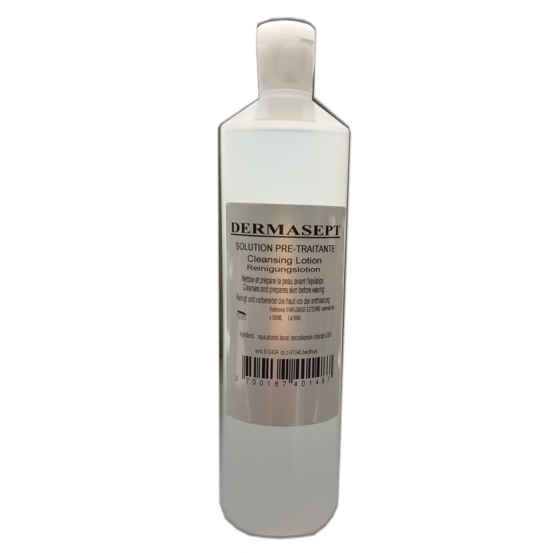 Lotion pré-épilatoire - Flacon de 500 ml de Dermasept. Produit nettoyant et désinfectant pour les zones à épiler